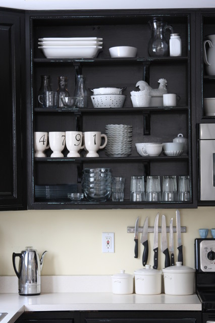 suggestion: taking doors off kitchen cabinets
